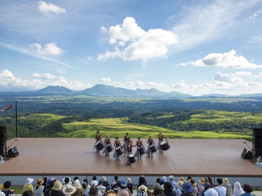 阿蘇くじゅう国立公園の雄大な景色を眺めて、
